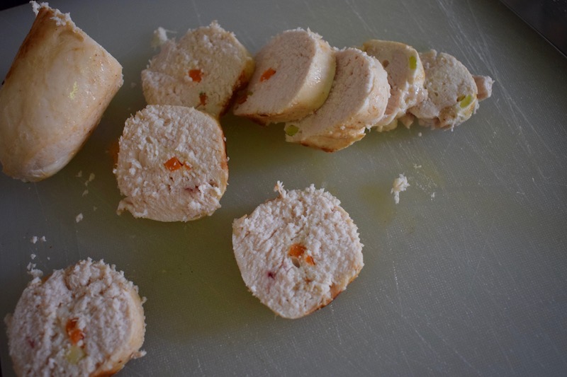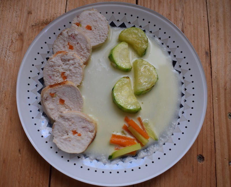 Ici j’ai pu tout de même voir un nouveau procédé : farcir des suprêmes et en faire des cylindres avant de les pocher! J’avais un peu peur de ne pas y arriver mais ça va j’y suis arrivée ouf!