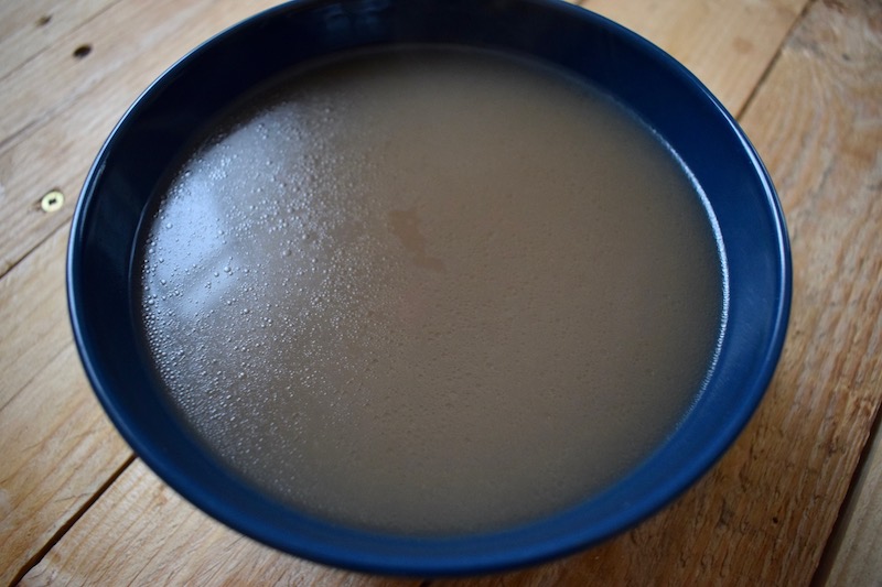 J’ai fait une marmite rapide ici car ce qui m’intéressait surtout c’était de voir la méthode de clarification. J’ai donc pris du fond de veau déshydraté (au lieu de préparer un fond avec des os).
