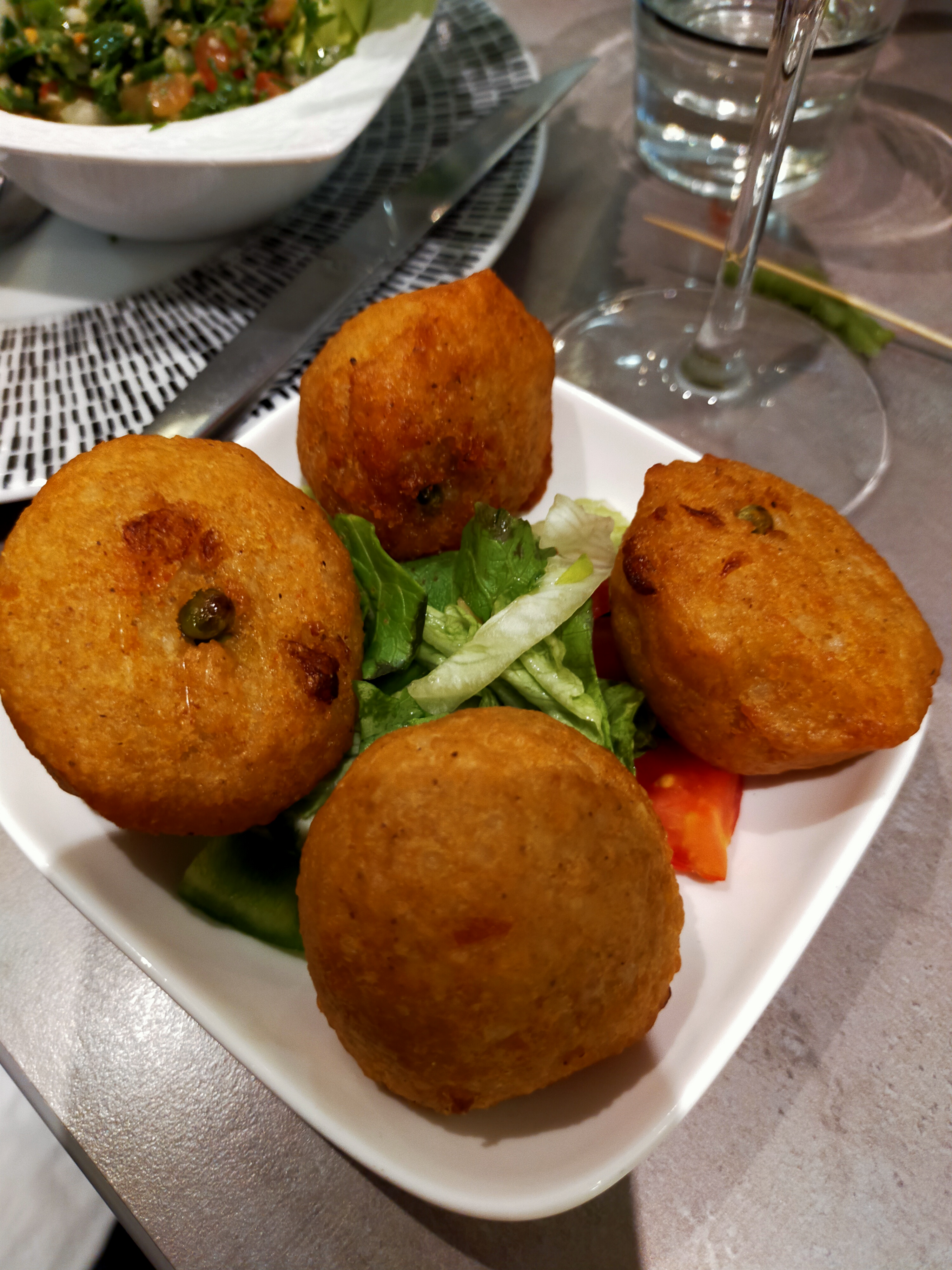 – KÉBBÉ VÉGÉTARIEN (Blé concassé, frit et farçi à la pomme de terre),