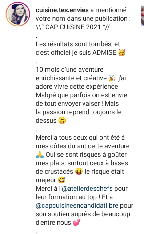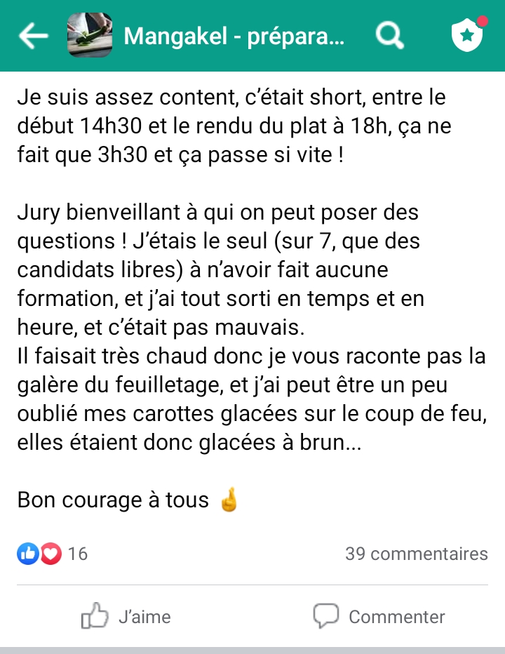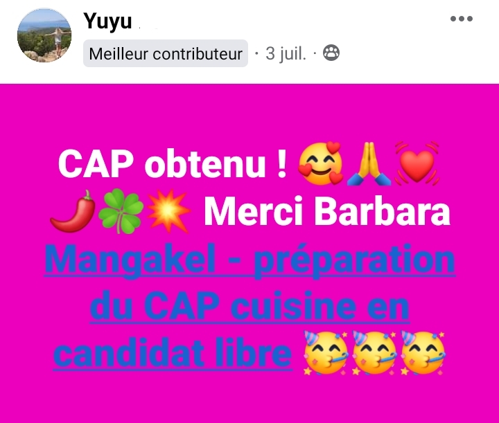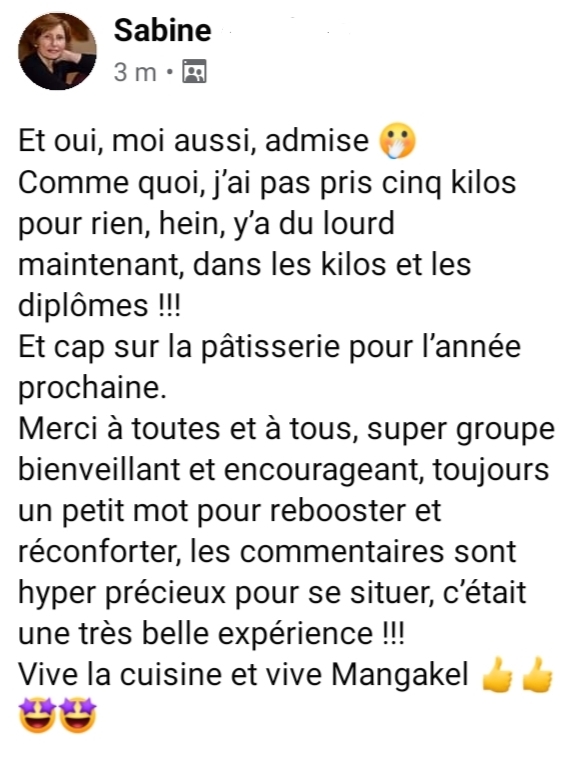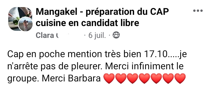Ce groupe Facebook je l’ai créé en 2018 lorsque j’ai commencé à m’entraîner pour passer le CAP cuisine. Nous étions au début une dizaine et nous sommes aujourd’hui une grosse communauté de plus de 1700 membres.