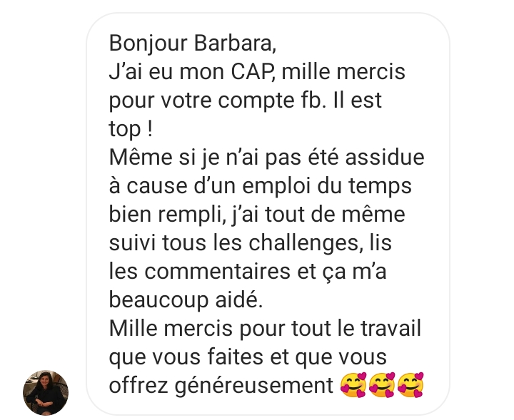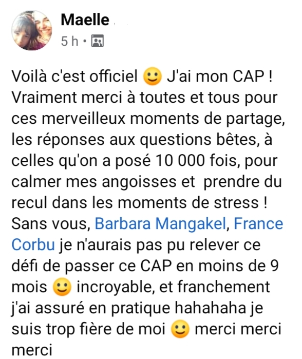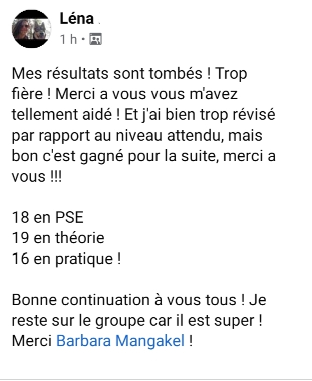 Et si tu as du mal à me croire sur le fait que tu n’as vraiment pas besoin d’acheter une formation en ligne onéreuse pour passer ton examen, regarde les témoignages qui suivent, ci-dessous. Des témoignages comme ça, j’en ai chaque année.