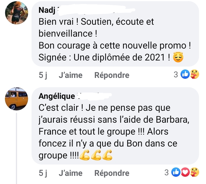 Voici quelques témoignages au sujet des formations. Fais glisser l’image pour voir la suite :