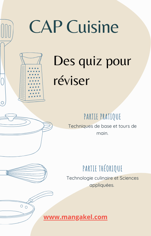 Cet ouvrage a été conçu pour te faire travailler la partie théorique (la Technologie culinaire et les Sciences appliquées). Joli et ludique, il se présente sous forme de questions/réponses. Pour qu’il soit ultra efficace : utilise-le en complément de tes cours dès le début de l’année ! En fin d’années tu pourras également t’en servir comme fiches pour réviser.