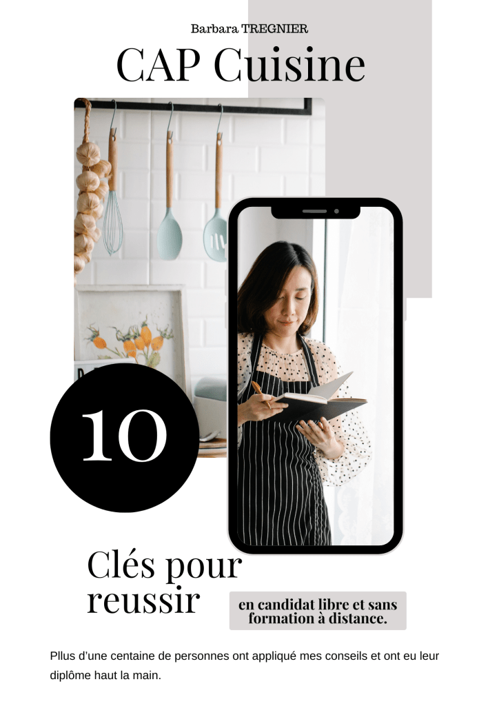 Pourquoi je pense pouvoir t’aider ? Et bien tout simplement parce que je suis passée par là moi aussi et que de ce fait je sais mieux que quiconque les difficultés, les doutes, les peurs et les questionnements que l’on peut avoir lorsqu’on prépare seul le CAP cuisine. C’est un vrai parcours du combattant : On ne sait pas pour où commencer, à quelle porte taper, quoi apprendre. Tout semble insurmontable. C’est pour cela que je te propose mon aide. Car je sais exactement ce que tu dois faire pour y arriver, sans avoir à craquer ton PEL.